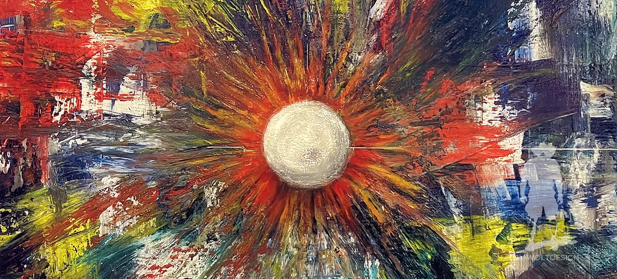 Acryl, Farbpigmente und Temprafarben treffen in einem explosiven Farbausbruch aufeinander.
